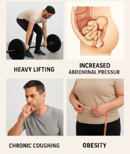 - Straining During Urination or Bowel Movements: Often due to constipation or prostate problems, this increases abdominal pressure.