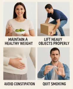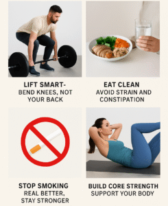 - Quit Smoking: Smoking weakens muscles and can lead to chronic coughing, both of which increase hernia risk.