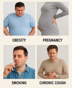 - Chronic Cough: Repeated coughing strains the abdominal muscles, making hernias more likely.